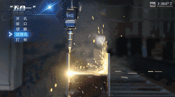滬工HGLH系列型鋼激光切割機采用創(chuàng)新的五合一切割模式,一次裝夾即可完成螺栓孔、坡口、過焊孔、打標(biāo)劃線、切斷等多道工序,節(jié)省約一半人力,實現(xiàn)了高效、連貫的加工流程。極大地提升了生產(chǎn)效率,降低了人力成本。