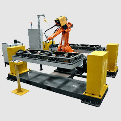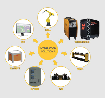 滬工機(jī)器人工作站結(jié)構(gòu)主要由:機(jī)器人、焊接或切割電源、變位機(jī)、夾具、電氣裝置、安全防護(hù)罩等組成。